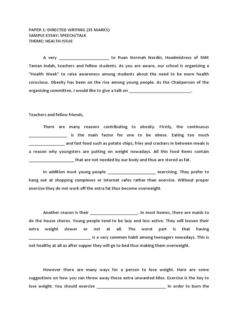 Use these tips and the sample essay below as an example only. Sample for spm directed writing. Essay speech pt3 & contoh bi :
